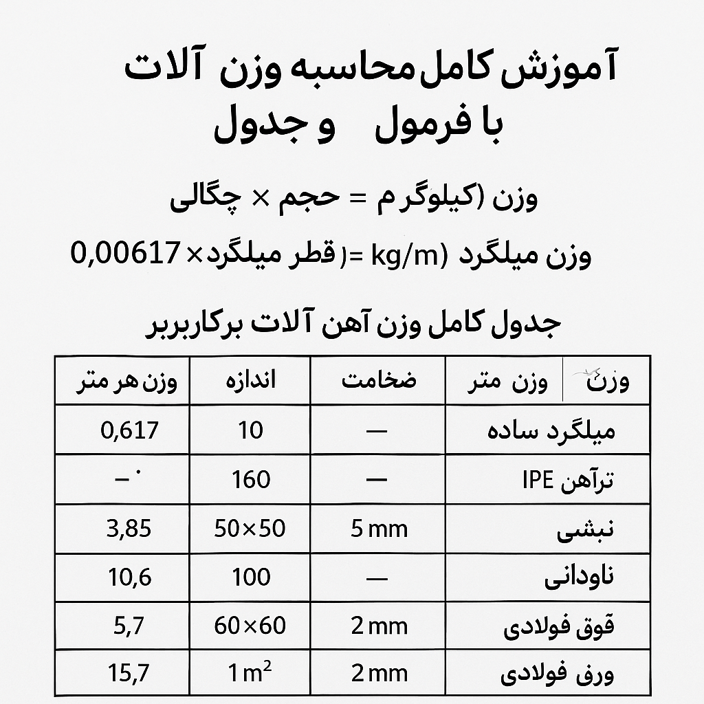 آموزش کامل محاسبه وزن آهنآلات با فرمول و جدول مقدمه در صنایع ساختمانی و پروژههای عمرانی، اطلاع از وزن دقیق آهنآلات نقش . . .